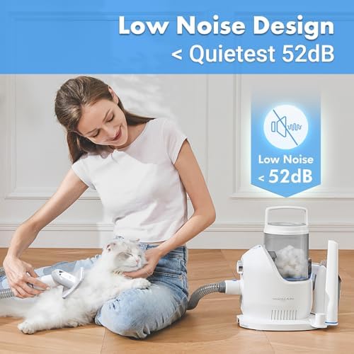 【Low Noise Design】 This pet vacuum cleaner has 3 suction speeds with a low-noise design to help the pet feel at ease and no longer afraid of haircuts. We suggest grooming your pet with our brush before trimming pet hair, and treating your pet with little snacks to avoid making your pet nervous because of vacuuming noise, which conclusively makes the grooming experience even more enjoyable.