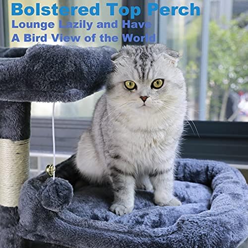 NICE LOOKING: This attractive cat trees and towers in elegant gray will blend nicely with your room decor as a piece of modern cat furniture. A perfect gift for both your kitten and your sweet home!