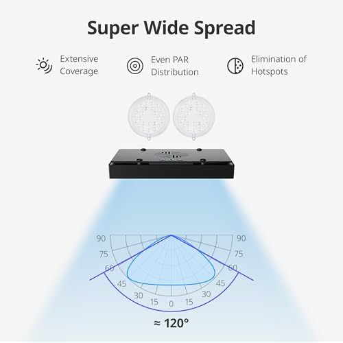 A custom designed wide-angle optical system achieves extensive coverage, gets even PAR distribution, and eliminates hotspots