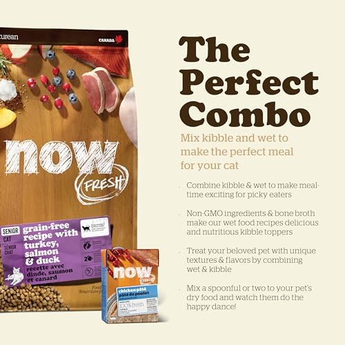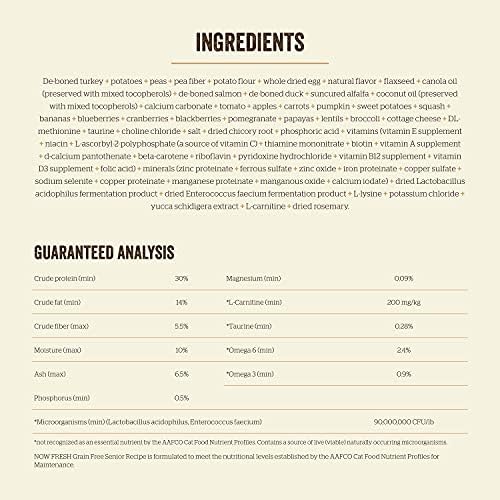At Now Fresh, we believe that as your cat enters their golden years, they deserve nutrition that supports their changing needs. That’s why we created this Now Fresh recipe for senior cats (7+ years) with care and expertise. Designed to support your aging cat’s overall health, it provides complete nutrition with weight management, digestive and heart health support.