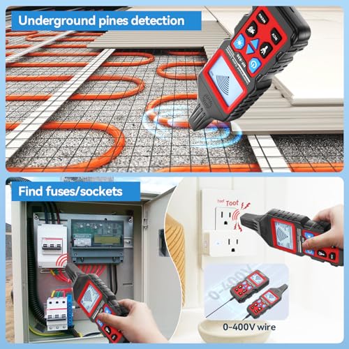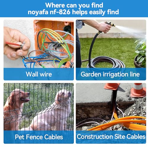 Wire Break Locator: NF-826 wire tracer can accurately detect single-core and multi-core cables, as well as metal pipes buried in walls or underground. It is ideal for inspecting safety circuits, covered sockets, and junction box issues, and can quickly locate short-circuit faults in underfloor electric heating lines.. (NOTICE: The short-circuit point test must first know the short-circuit core, otherwise it cannot be tested.)