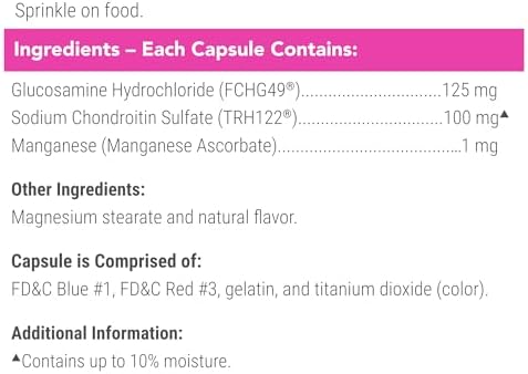 Contains 125 milligrams FCHG49 Glucosamine and 100 milligrams TRH122 Chondroitin Sulfate per capsule