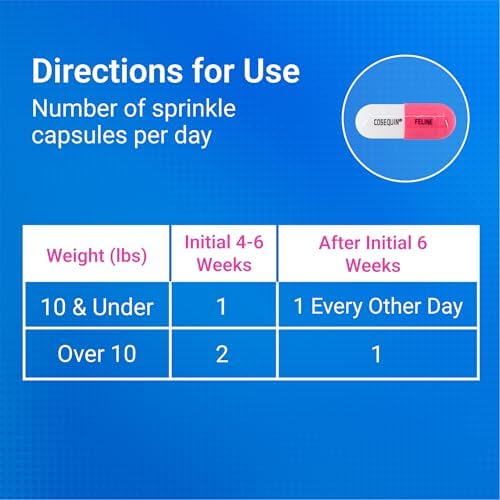 Cosequin for Cats is a nutritional supplement to help your pet maintain healthy joints. As your pet ages, it’s common for his joints to become less flexible, which impacts his mobility and quality of life. Cosequin is the top recommended brand of veterinarians to support and maintain the health of your cat’s joints. The only joint health supplement brand that has been shown safe, effective, and bioavailable in peer-reviewed, published, controlled, U. S. veterinary studies. Cosequin for Cats helps support cartilage production and protect existing cartilage from breakdown. It’s manufactured following standards similar to those practiced by the pharmaceutical industry. Each capsule contains at least 125 milligrams of Glucosamine Hydrochloride, 100 milligrams of Sodium Chondroitin Sulfate, and 1 milligram of Manganese. Please read all label information on delivery. Indications: Stop Use Indications: Your veterinarian is your best ally in managing your pet’s health. If your pet has any condition that requires medical attention, you should always consult your veterinarian. Keep out of reach of children. For animal use only.
