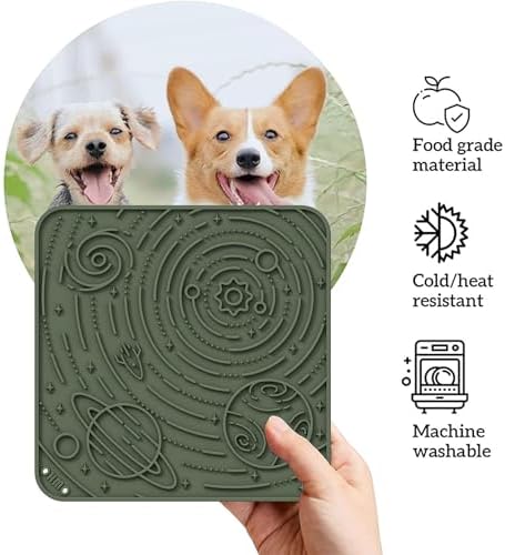 Wide application-7.9″×7.9 ” Versatile and Nourishing Delights – The licking mat proves to be an idyllic platform for a plethora of delectable pet foods, ranging from velvety egg peanut butter and creamy yogurt to luscious pumpkin puree, enticing canned delicacies, and even raw dog food or succulent ground meat. Furthermore, this versatile mat transcends its utilitarian purpose by serving as a captivating element for room decoration.