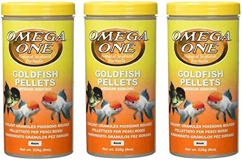 3 pack. Complete food for all goldfish. Rich in omega 3 and 6. Natural pigments in salmon skins for vibrant colors. Fresh, natural fats. An abundance and variety of fresh seafood protein means less starch. Never clouds water. Low in ash. Instructions: Feed 3 times daily, using only as much food as fish can consume in 2 minutes.