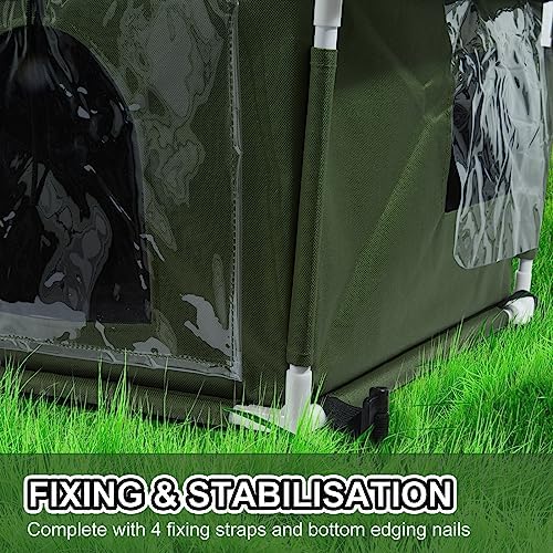 THOUGHTFUL DESIGN: The feral cat house adopts natural colors to enhance the protection of cats and reduce unnecessary injuries. The thoughtful design of the escape window keeps cats away from various dangers, without worrying about being attacked. The outdoor cat shelter is equipped with 4 edging nails, which can be firmly fixed on the ground and will not be blown away by the wind. High quality waterproof Oxford cloth is easy to clean, just brush the surface directly enough to keep it clean.