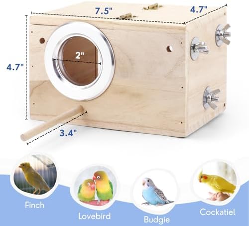 Premium Materials: Crafted from sturdy natural wood, our nesting box ensures durability and sustainability. Your parakeets will have a secure and reliable home for days to come.