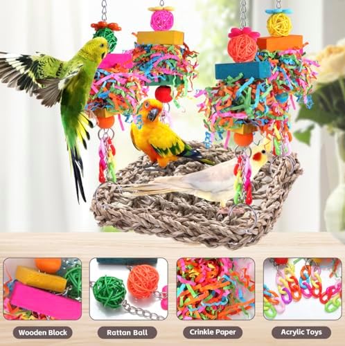 Ultimate Hammock Playground: Provides birds with essential physical activity by offering opportunities to peck, nibble, shred, preen, and chew, ensuring a stable, happy, and mentally active feathered friend.