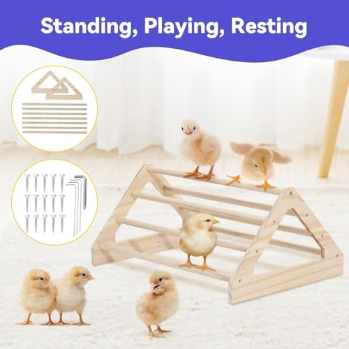 【Quality Chick Habitat】 Small pet enclosure features waterproof polyester taffeta and high-density mesh, preventing dirty liquids penetration into the floor, breathable and prevent chicks from escaping. Chick perch fits multiple chicks to stand, play and rest at the same time. (Tips: Manual installation required, comes with 1*Phillips screwdriver, 16*screws.)