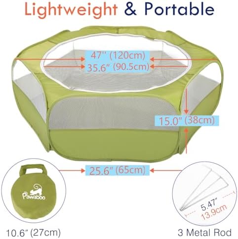 This Pawaboo Small Animals Playpen offers a wonderful place for your pet to play securely and comfortably. It is ventilated on all sides and the top can be left open or closed. It is a great travel pen and easy to set up and take down for quick access. Suitable For hamsters, kitten, squirrel, bunny, reptile or other small animals.