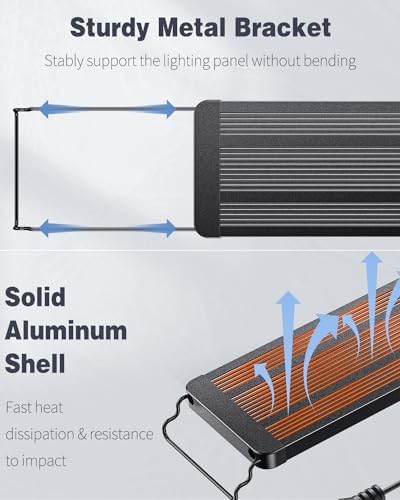 For 18″ to 24″ Tanks: With an extendable bracket (min length: up to 18.5″; max length: up to 27″), the LED aquarium light always stays steady on the fish tank. Work best on tanks of 18 to 24 inches long.