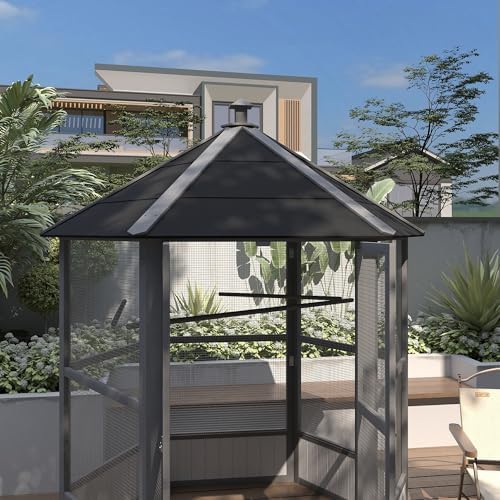 Indoor or Outdoor Use: This outdoor bird aviary is great for either indoor or outdoor use. The water-resistant composite asphalt roof, baseboard, and finish help the birdcage endure the elements.