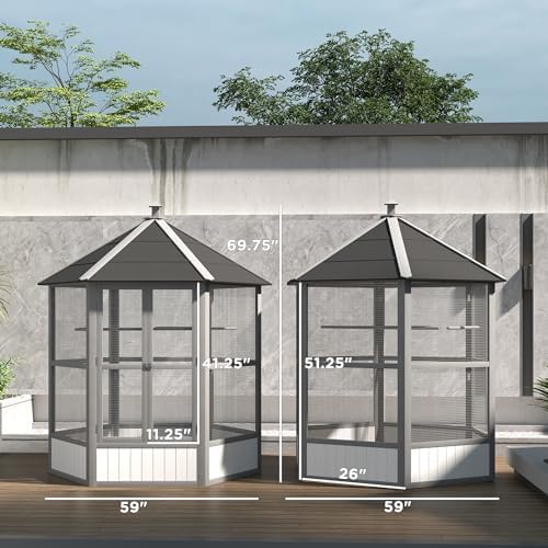 Stable: Built with lightweight fir wood, this outdoor bird cage will provide years of use and enjoyment. The cage is covered with 0.31-inch spaced metal wire to protect your birds from outside predators.