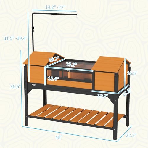 Tortoise Habitat Info: Overall Dimensions: 48″ L x 22.2″ W x 36.6″ H (without lamp holder).