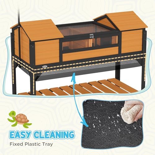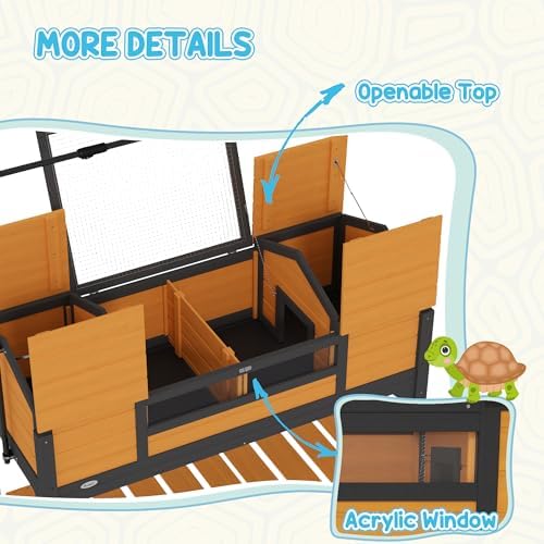 Convenient Features: The leak-proof design and an attached plastic tray ensure a clean tortoise enclosure, providing hassle-free maintenance and a hygienic living area. The observation window and openable top in the running area allow easy access and effortless interaction with your tortoise, keeping you connected with your pet.