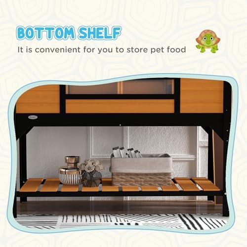 Convenient Storage: The bottom shelf provides a dedicated space to store your tortoise’s food and supplies, keeping them organized and readily accessible. This practical tortoise house keeps everything your pet needs within arm’s reach.
