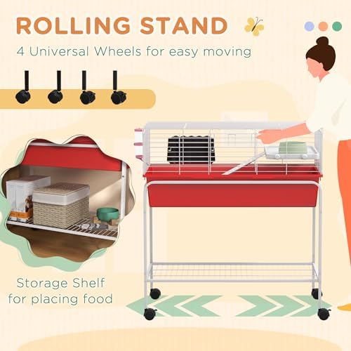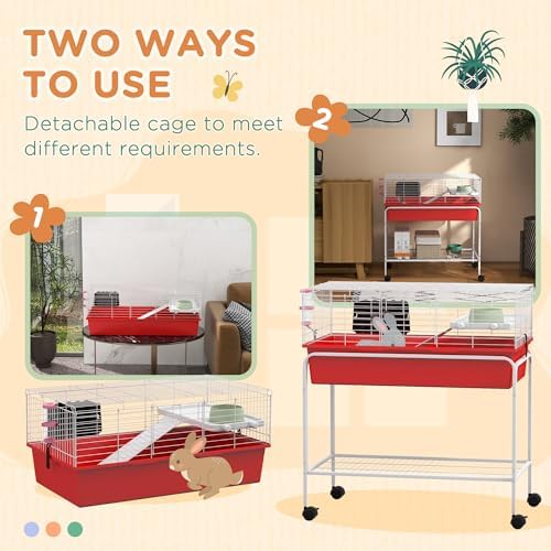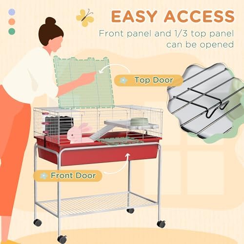 Elevated Platform & Pet Accessories: This pet cage comes with an elevated platform to create a private space underneath. A food dish, hay feeder, and water bottle are included.