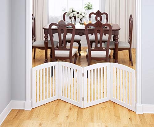 FOLDING AND EXPANDABLE DESIGN: This Pet Dog Fence is Free Standing and Can be Folded Out into the Wide Z-Shape Allows You to Use It in Full Hallways, Double Doors, Or Standard Doorways, Bedrooms, Staircases or Any Place in Your House.