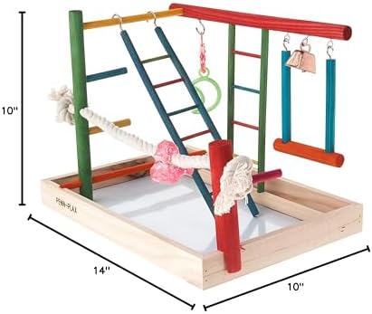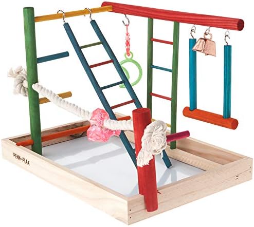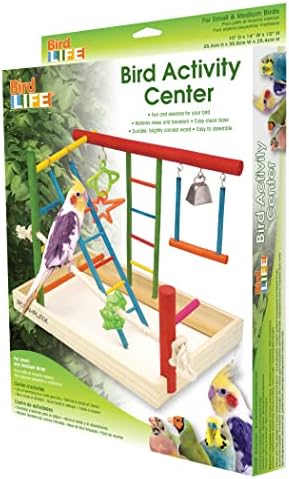 Bird Life Presents the Large Bird Life Activity Center by Penn-Plax. This item provides for the perfect outlet for your pet’s curiosity, exercise, and socialization. They’ll love spending some time outside of the cage, playing with an assortment of toys and activities. Included Features: Our Large Activity Centers contain all of the following: 6-Step ladder, 100% Cotton Rope with Acrylic Toy, Cosmic-Links Climbing Toy, Play Swing, and Copper Bell. Colorful and Safe: While the wood is dyed with harmless and safe food coloring, your feathery friend will surely enjoy all the colorfulness of a rainbow! *Food coloring used is safe for both birds and humans. Measurements: Overall Size of Large: 10” (H) x 14” (W) 10” (D). Choose From Several Sizes: Our playpens come in various sizes: Small, Medium, Large, and Extra-large. As their size increases, so does the included perches and ladders. Shop Penn-Plax for All Your Pet’s Needs: Penn-Plax is a manufacturer and distributor of top quality pet supplies, who specialize in creating excellent pet products for animals, both great and small.