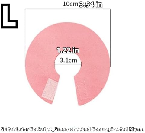 Adjustable Size: The parrot collar offer 4 size to choose, featured with Velcro, that can be adjust due your birds neck circumference, convenient to use and wear. S:Inner Diameter:0.79 in,Outer Diameter:2.76 in,Suitable for Budgie ,White Java sparrow, finch. M:Inner Diameter:1.10 in,Outer Diameter:3.54 in,Suitable for Lovebird. L:Inner Diameter:1.22 in,Outer Diameter:3.94 in,Suitable for Cockatiel ,Green-cheeked Conure. XL:Inner Diameter:1.50 in,Outer Diameter:4.88 in,Suitable for Quaker,etc.
