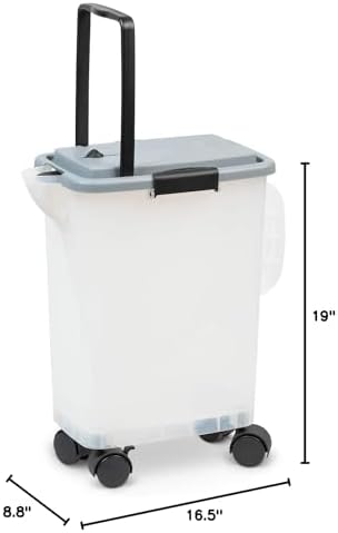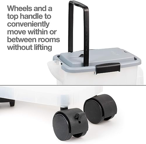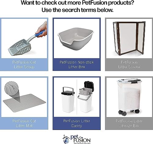 PetFusion’s smart functional design uses locking clips keep your litter secure and keeps out moisture & humidity. Our unique adjustable spout minimizes litter dust and controls the pour. It has a transparent look, so you know when it’s time to replenish. It is compact at 16. 5″ x 8. 8″ x 19. 0″ (lwh), easily fitting in a closet or cabinet and allows you the flexibility to split the cat litter between bag & bin, providing readily available litter at multiple locations. Wheels & top handle to conveniently move within or between rooms. Adjustable spout to increase or decrease litter pour speed. A Large rear ‘teapot’ handle makes refilling your litter box easy. The bin is made of polypropylene plastic, more durable than other options and will last for years to come.