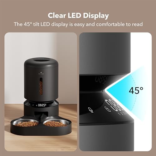 Easy to Set up and Program: PETLIBRO timed cat feeder can set 1-6 meals daily and up to 50 portions per meal (20ml each portion). Use the easy-to-read tilt LED panel to adjust your pet’s feeding schedule and monitor battery power. The Granary auto cat feeder is also equipped with a manual feeding button to easily reward your pet (up to 5 portions).