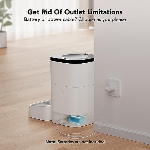 Dual Power Mode : Power the feeder via the included power adapter or 3 pieces D batteries (not included). Battery Backup ensures that your pets get fed even in a power outage. Recommended to use both battery and adapter in case any of power cut off