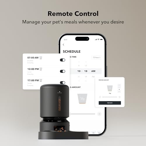 Two-way Audio & Personalized Meal Call: PETLIBRO automatic pet feeder for cat and dog with built-in advanced microphone and speaker allow you to keep in touch with your pet baby anywhere anytime. Record a voice message(up to 10s) that plays at mealtime, and set the times(0-5) the meal call play, deliver reminders or just send an “I love you”. The old one is deleted when a new voice recording is done. Easily check the food level through the transparent window and add food in time
