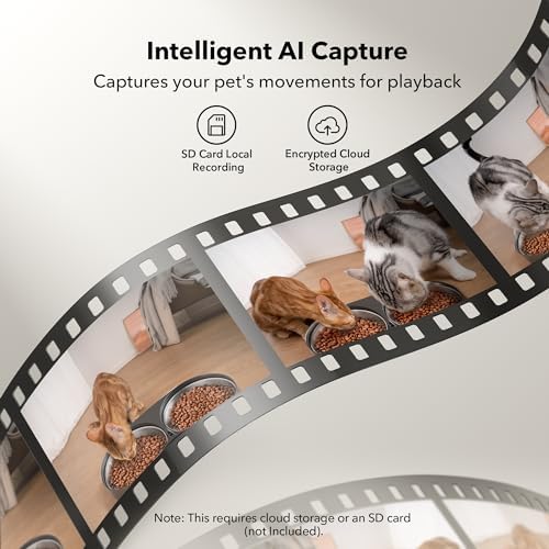 1080P HD Camera for Remote Monitoring: The PETLIBRO smart pet feeder with camera features a high resolution 1080P HD camera with 145° wide viewing angle, allowing you to see&hear your beloved pets and care their eating remotely while on the go. Videos can be saved on mirco SD cards up to 256G or cloud storage for an extra pay online. The built-in camera supports IR night vision for clear monitoring in the dark, helping you learn your pet’s eating habits through video playback in the APP