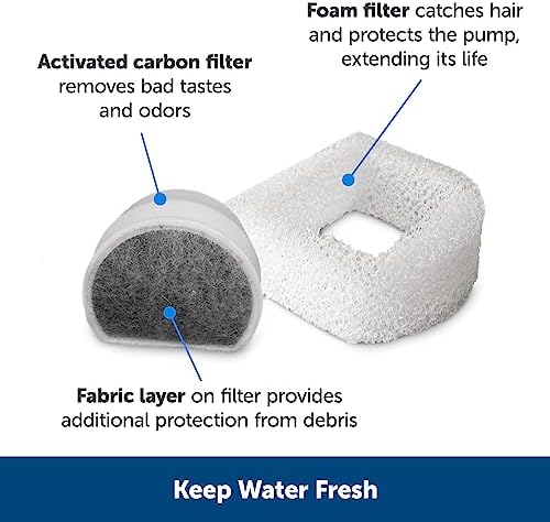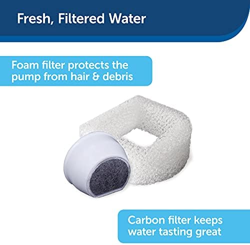 FRESH, FLOWING WATER: Replaceable carbon keeps water fresh and the foam filter catches pet hair and debris to keep your cat’s water clean