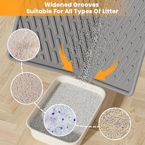 Waterproof & Ultra-Soft Mat : Our litter mat for cat is durable and designed to resist cat’s scratching, soft EVA litter box mat providing comfortable support for cat’s every step. 100% waterproof material for leak protection, keeping your floors safe from water and urine. Long term use for active cats.