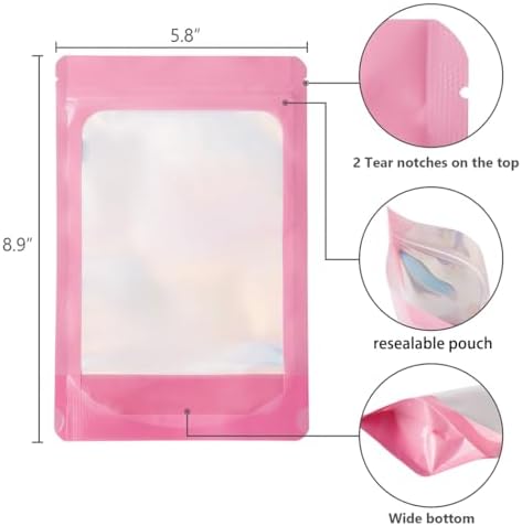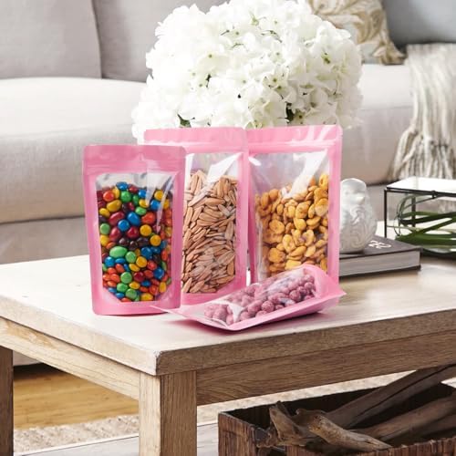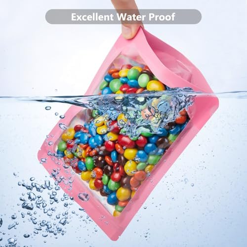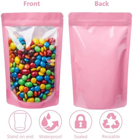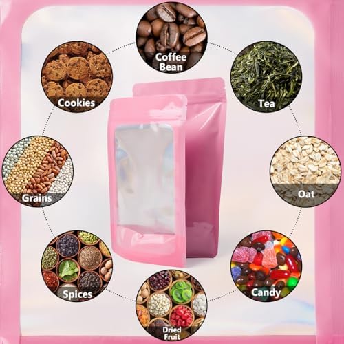 Stay Organized and Keep Food FreshThese stand-up pouches feature a clear front and durable aluminum foil back, making it easy to see what’s inside. Their self-standing design saves space and keeps your kitchen or pantry neat and tidy.Strong Barrier Protection Each bag offers a reliable seal against moisture, odors, vapor, insects, and even mice. Perfect for storing snacks, spices, cookies, coffee, nuts, grains, and pet treats. The airtight resealable closure is smell-proof and waterproof.Heat Sealable & Resealable With a heat-sealable top and tear notches, you can create a tamper-proof seal for long-term storage. Once opened, the bag is easy to reseal and reuse. The reinforced bottom makes filling simple and mess-free.Heavy-Duty and Food-Safe Made with thick, food-grade materials, these pouches combine visibility and protection. The strong resealable closure keeps contents secure, whether for daily use or long-term storage.Great Value – Bulk Pack Ideal for families, home cooks, and small businesses. These multi-use bags help you stay organized while keeping food fresh and protected.