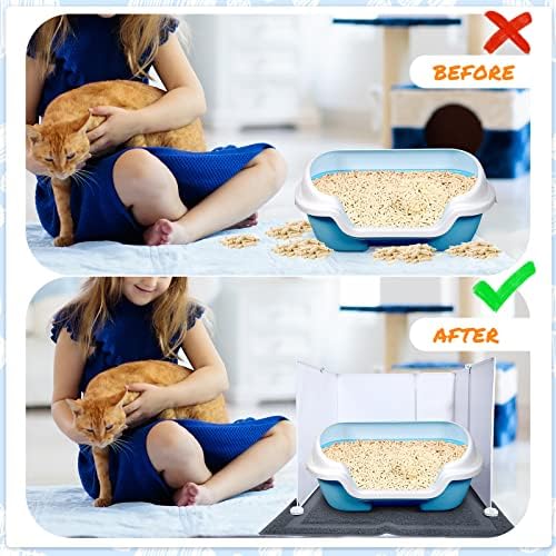 Safe and Cat Friendly Material: the cat box pee shield adopts the PP material and the pet mat is made of PVC, which is safe and odorless, without harm to your cat’s health; The litter splash guard is enclosed around the litter box to give your cat a private space, while the top is open to allow your cat breath fresh air