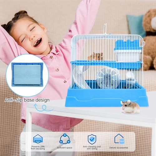 Portable and Convenient:The pygmy hamster cage has carrying handles and the whole set is so lightweight that you can easily carry it with you whether you are out for a walk or travelling outdoors