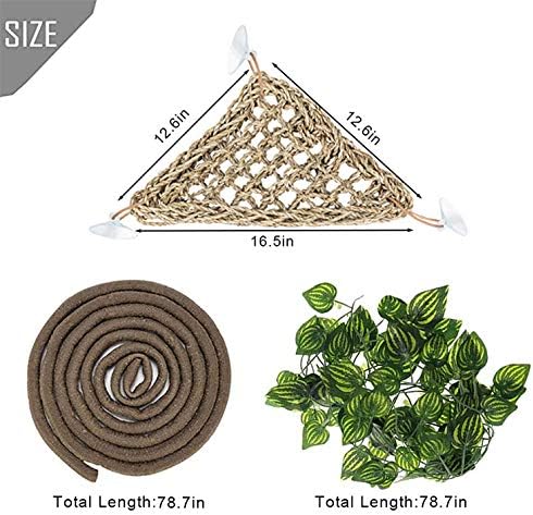 PINVNBY Bearded Dragon Tank Accessories Lizard Habitat Hammock Reptile Natural Seagrass Coconut Shell Toy Jungle Climber Bendable Vines Leaves Decor