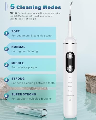5 Cleaning Modes & IPX6 Waterproof: The teeth stain remover has Soft, Normal, Middle, Strong, and Super strong modes with a low-noise and low-vibration design. Waterproof design allows washing the head under water. Tips: Please choose soft mode until your dogs get used to the feel of using it