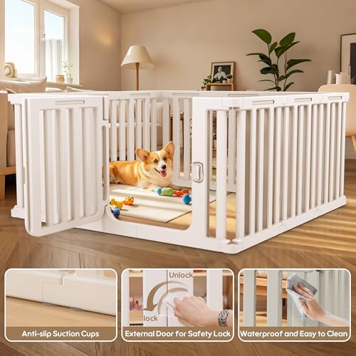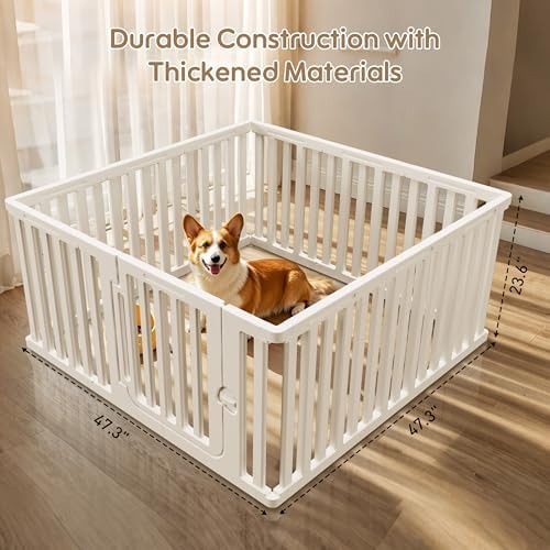 Safety First & Easy Entry: The dog pen is designed with a front door, so you won’t need to lift your pet, reducing strain on your back, and effectively prevent pets from moving around randomly. Advanced blow-molded panels are thicker and stronger, and will not deform even when bumped during play.
