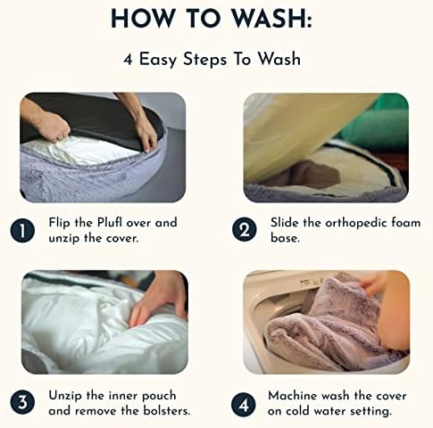 𝐄𝐀𝐒𝐘 𝐂𝐀𝐑𝐄: Caring for your Plufl couldn’t be easier. With a 100% machine washable exterior, simply unzip, remove the base mattress and support bolsters, and toss the cover in your machine on cold. Be sure to hang dry to keep the vegan faux fur looking fresh and… well, Plufl-y!