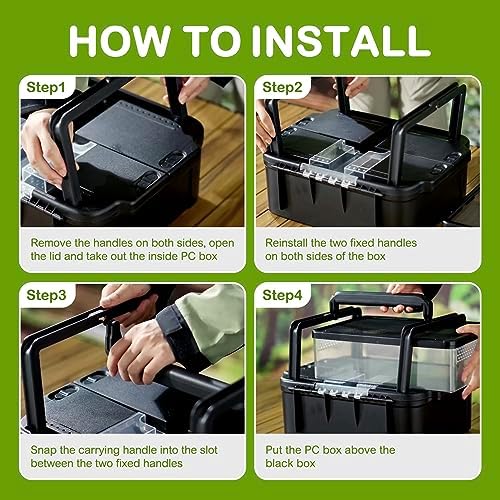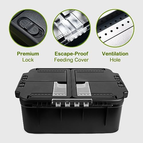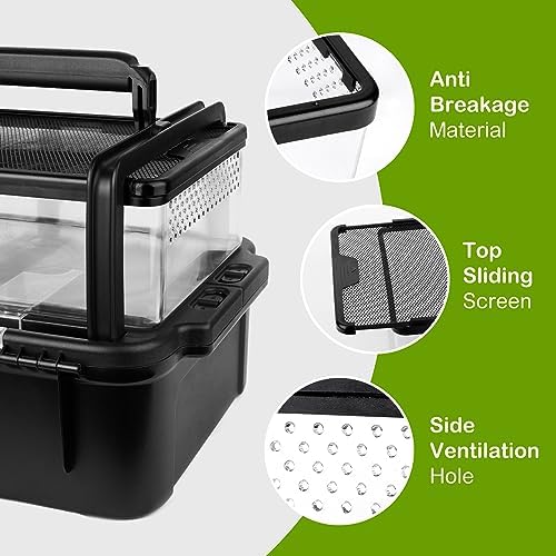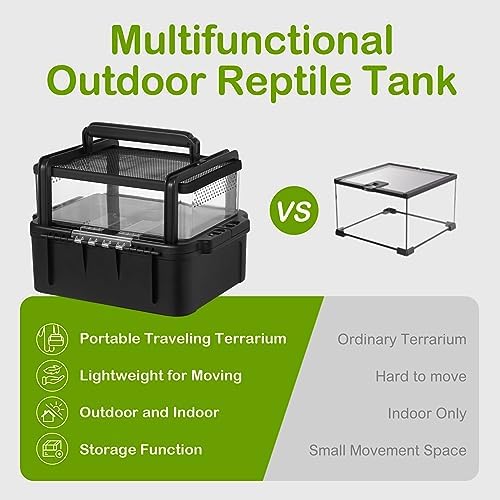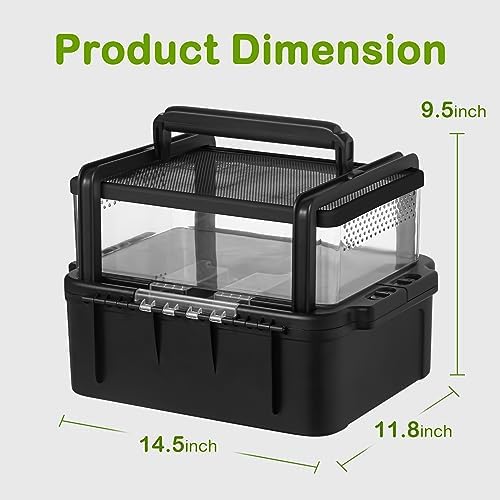 Ventilation design&Premium Lock: The double-sided ventilation design ensures optimal airflow throughout the tank, creating a comfortable and healthy environment for your reptile friends. The top of the ABS box features two rows of ventilation holes, further promoting air circulation. The bottom tank can be securely locked to prevent any escape attempts and it comes with a transparent lid that allows you to easily observe and monitor the behavior and well-being of your reptiles