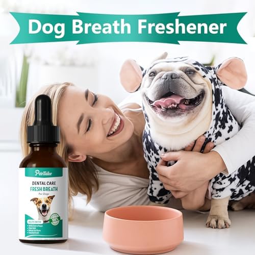 Drops neutralize bacteria while your dog drinks—no brushing needed!