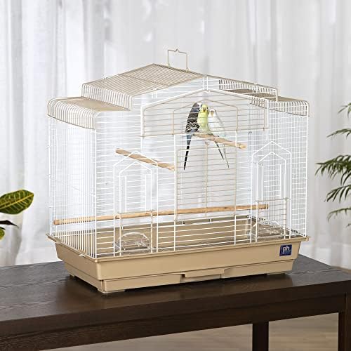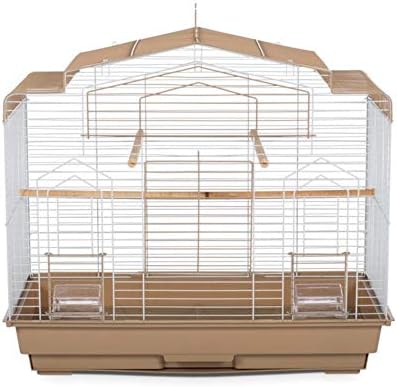 Prevue Pet Products Barn style bird cage brown and White SP50051 features a unique Barn style roof design. A large front opening door plus a drop down landing Perch door let you easily access your pet. A removable bottom grille and 1-Inch deep pull-out tray make cleaning your cage quick and easy. Prevue Pet Products Barn style cage includes 2 outside access feed/water cups, 3 perches and is designed for parakeets, cockatiels and other small-medium birds. Available in a brown and White color combination, cage measures 26-inch L by 14-inch W by 23 1/2-inch H with 1/2-inch wire spacing.