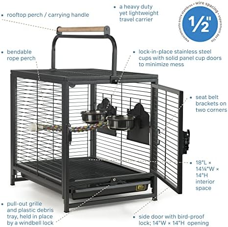 Versatile: This carry cage is ideal for small to medium size birds and parrots including a parakeet, parrotlet, lovebird, caique, cockatiel, conure, small parrot, and budgie.