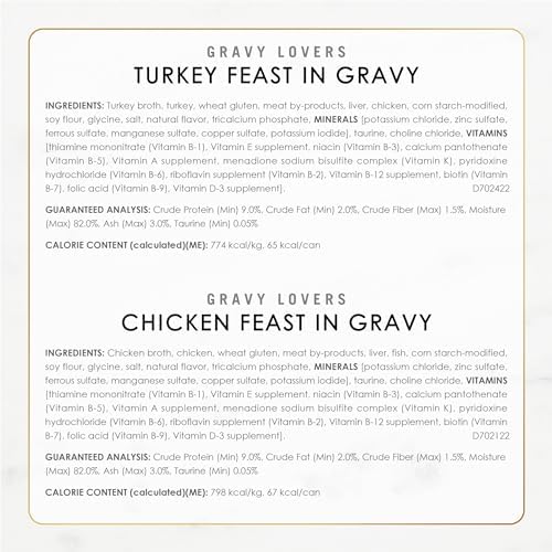 An irresistible, protein-rich Fancy Feast Gravy Lovers cat food taste offering a gourmet turkey, chicken or beef cat food meal with an enticing aroma and a light, savory gravy