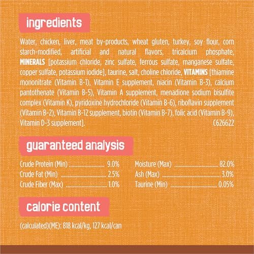 Wet food for cats delivering 100 percent complete and balanced nutrition formulated for adult cats with no artificial colors or preservatives