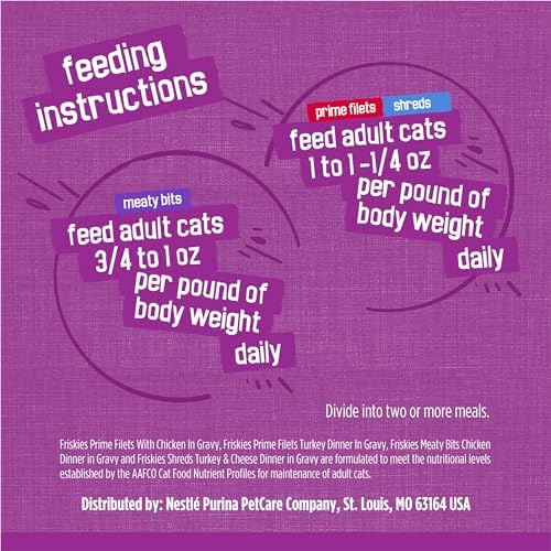 Friskies Shreds, Meaty Bits and Prime Filets high-protein wet cat food gives her something substantial to chew on. Provides 100 percent complete and balanced nutrition
