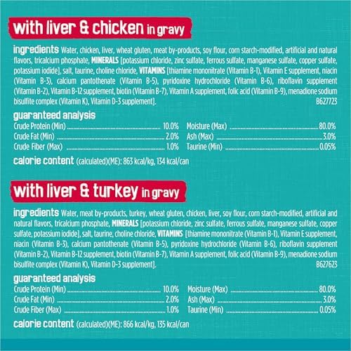 Tempting canned cat food aroma entices your cat to her dish, where she’ll be rewarded with 100 percent complete and balanced nutrition for adult cats with no artificial colors or preservatives