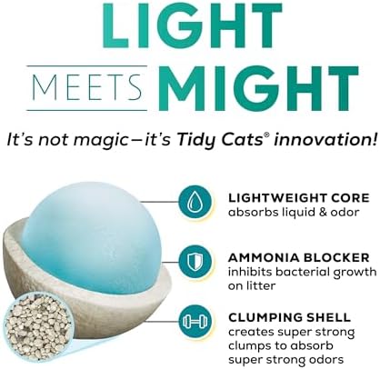 Keep your cats’ litter boxes tidy with Purina Tidy Cats LightWeight Free and Clean Unscented With Ammonia Blocker clumping multi cat litter. This unscented cat litter is free from fragrances and dyes, and the low-dust composition means it pours easily and cleanly into the litter box. Activated charcoal in the clay cat litter absorbs odors on contact, while an Ammonia Blocker prevents ammonia odor from forming for 14 days when used as directed. This cat litter helps keep your home smelling fresh. Weighing half as much as the leading clay clumping cat litter, this Tidy Cats lightweight cat litter is also easy to carry, pour and store to make taking care of the litter pan easy. The odor control cat litter formula helps lock in moisture, keeping your cats comfortable. Rest easy using this unscented lightweight cat litter for your whole cat family, knowing it’s made by Tidy Cats, a brand most often recommended and personally used by veterinarians.