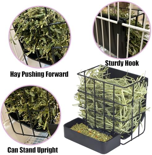 【 Durable and sturdy 】 The hay feed two in one feeder is made of heavy metal, which is sturdy and durable, anti chewing, easy to use, and easy to clean