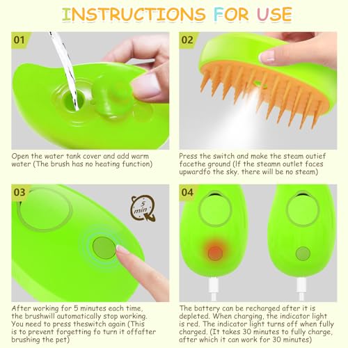 🐱🐶【Elevate your pet’s well-being with the Cat Steam Brush】Beyond enhancing your cat’s appearance, regular use promotes better blood circulation, healthy skin, and a shiny coat. This results in reduced shedding and hairball issues, contributing to your cat’s overall health and comfort. Your feline friend will surely thank you for the extra care.