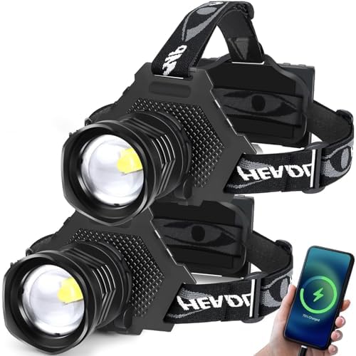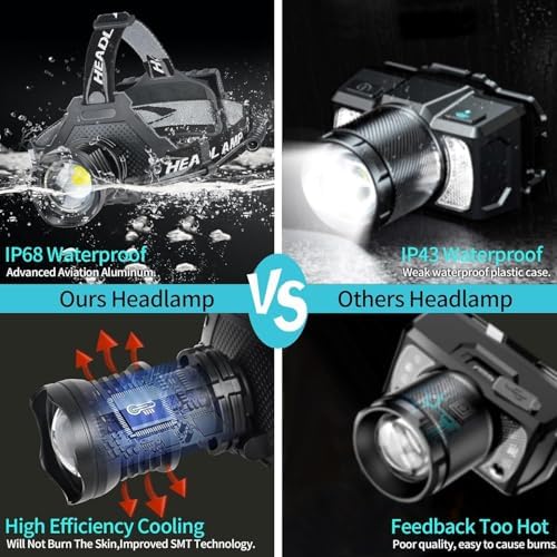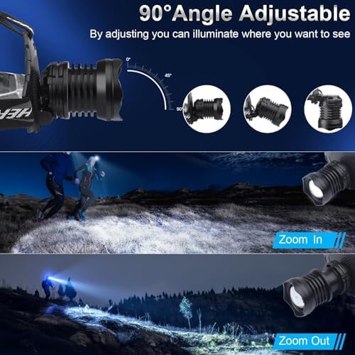 Headlamp Super Bright with IPX6 Waterproof, Lightweight, Zoomable,90° Adjustable